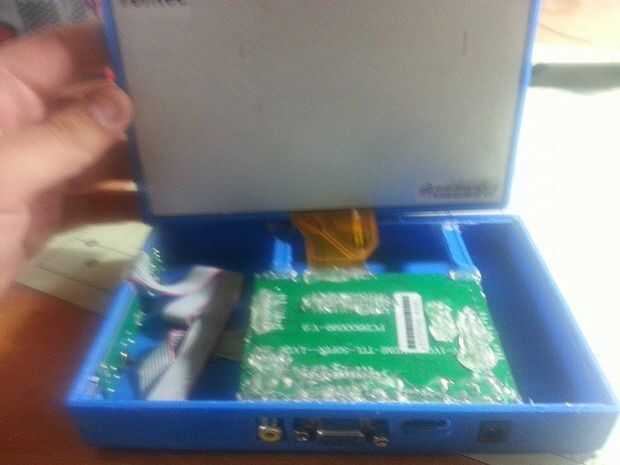 La parte delantera de la caja fue pegada con pegamento a la pantalla LCD.