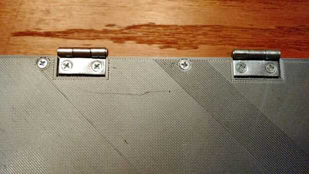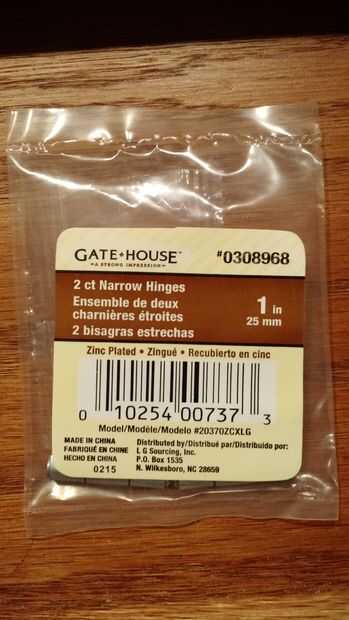 Las bisagras usé encajan perfectamente en las ranuras para que la caja se cierra completamente. Tengo de Lowes y eran bastante baratos. Esto también evita que la caja se abre quitando las bisagras. Use los tornillos que vienen con las bisagras aquí.
