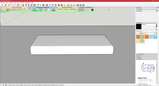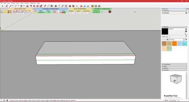 Una vez RoundCorner se instala y se reinicia SketchUp, luego verás 3 herramientas adicionales se muestran en la barra de herramientas. Para utilizar RoundCorner, haga clic en la herramienta de RoundCorner amarillo y luego seleccione un borde. Usted verá un montón de complejas opciones para elegir, pero no te preocupes, solo tendrás 2 opciones. Bajo parámetros de redondeo, Offset controla hasta dónde se extiende la curva en el borde. # Seg controla cómo lisa es la curva, pero 10s (valor predeterminado) es suficiente para nuestras necesidades. Mediante el uso de RoundCorner, podemos suavizar los bordes en nuestra cámara empuñadura, lo más importante es la parte donde nos va sosteniendo la empuñadura. Cuando hayas terminado redondeando el borde, presiona Enter y listo!