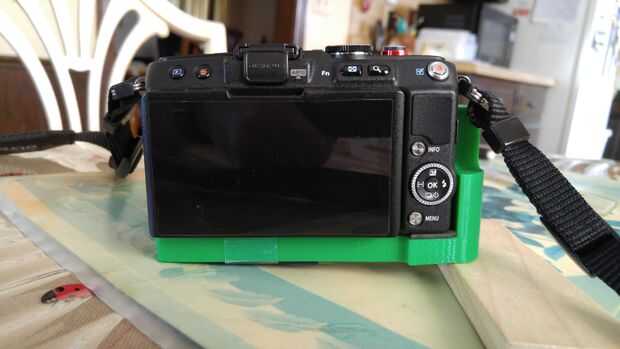Más, si no todos, las cámaras tienen la misma rosca de tornillo de trípode - 1/4 "x 20. El 1/4" define el diámetro, y 20 define el número de roscas. Fui a Home Depot y compre un tornillo de 1/4 "x 20 con longitud 3/4".