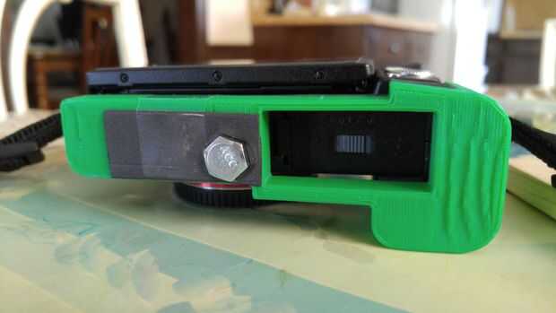 Además, he añadido un trozo de espuma en la parte superior de la parte superior e inferior de la empuñadura. Esto agrega un poco más de profundidad para el tornillo de apriete. Finalmente, como el frente de la cámara no era completamente plano, que terminó con algunos excesiva separación entre la porción de agarre de la mano y la cámara--de nuevo, he arreglado esto con un poco de espuma.