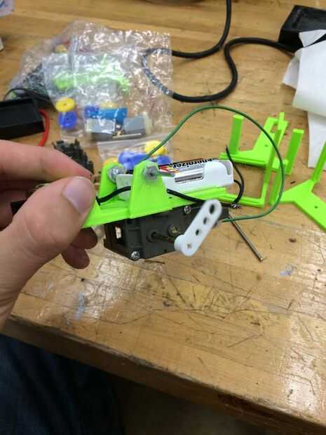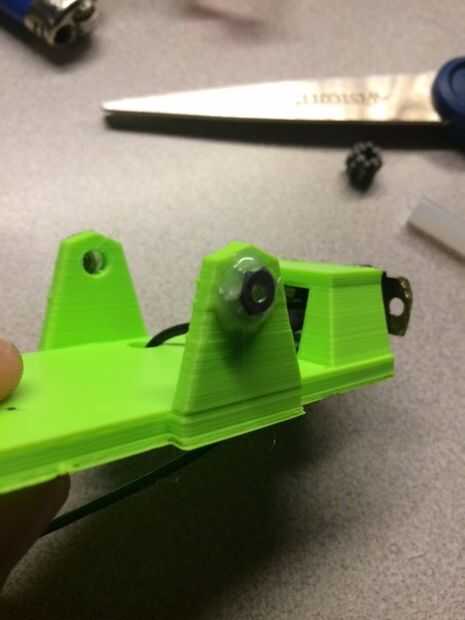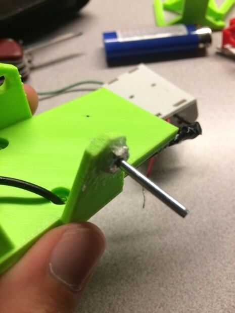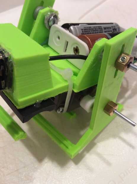Ahora, esta parte puede ser un poco frustrante sobre todo si tienes que trabajar sólo con lo que tienes alrededor de la tienda. En los orificios superiores de la base que vas a tomar 1 de las arandelas y el perno de alineación y a través de la alimentación y utilizar algún adhesivo para asegurarse de que does ' t mover. En el exterior si también utiliza unas arandelas en el interior de la pierna le da fuerza y no quiere doblar cuando está caminando. Una vez que el brazo de biela puede sujetarse al árbol que talamos antes. Algún pegamento en el agujero resulta para ser muy eficaz para mantener el eje asegurado. Tomando otro pasador de alineación a través del orificio más cercano al parque que tiene al plus. El pin puede ser alimentado a través del pequeño orificio y la contratuerca puede fijarse en el otro lado. Ahora el brazo de la biela debe ser capaz de girar libremente. Una vez hecho esto se puede repetir para el otro lado. Sin embargo, cuando el brazo de la biela se sujeta en el lado debe ser 180 grados desde el otro lado. Entonces ese mismo proceso se puede repetir para ese lado como el otro. Entonces usando las arandelas pequeñas como espaciadores de asegurarse de que las patas son cuadradas con la base del robot. Añadir a la final wight pequeño debajo del interruptor será equilibrar el robot por lo que puede caminar con éxito. Después de ambos lados son todos juntos la parte superior de las piernas Haz dos tuercas de fijación para asegurarse de que nada se cae y su montaje es completa!