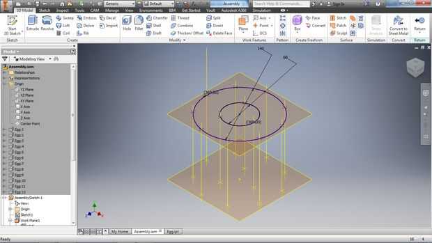 Proyectar estos puntos en el plano inferior y generar trabajo eje entre los puntos correspondientes.