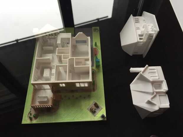 Originalmente este había hecho como un regalo para el cumpleaños 60 de mi padre. Es su casa 3D impreso, pintado y en 3 piezas dentro de un marco de caja de sombra iluminada. Hace un buen regalo para alguien interesado en arquitectura, maquetas, modelos o simplemente orgulloso de su propia casa :)