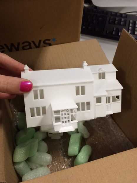 Originalmente este había hecho como un regalo para el cumpleaños 60 de mi padre. Es su casa 3D impreso, pintado y en 3 piezas dentro de un marco de caja de sombra iluminada. Hace un buen regalo para alguien interesado en arquitectura, maquetas, model