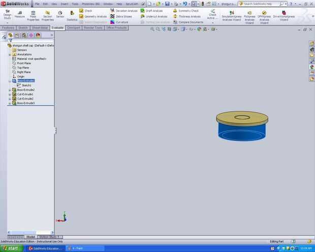 entonces saca el círculo.5 pulgadas de alto. hacer otro croquis en la parte superior del cilindro y que ser un círculo 1.75inches de diámetro. hacen el círculo.1 pulgadas de alto y añadir un círculo cortado de la extrusión en el centro para asemejarse a la cartilla. en la parte inferior del cilindro comience otro sketch. hacer un círculo 1,25 pulgadas de diámetro y cortar.5 pulgadas de profundidad. todo lo que tienes que hacer desde aquí es juntar las dos partes y usted tiene usted mismo un caso ligero de shotgunshell prueba de agua.