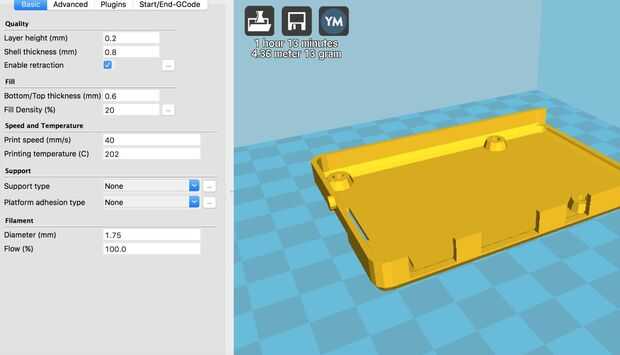 El fondo tarda 1 hora 13minutes y tarda 4,4 metros de filamento.