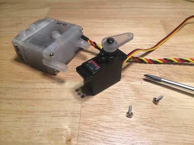 motores servos están diseñados para girar un máximo de +-130 grados. Pero pueden modificarse fácilmente para hacer giros de 360 grados. El hack está muy bien documentado para los varios modelos de motor servo. Aquí utilizo un servo Hitec HS-325HB com