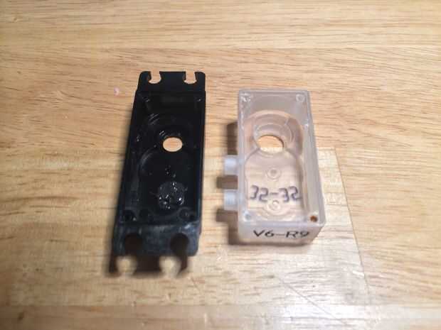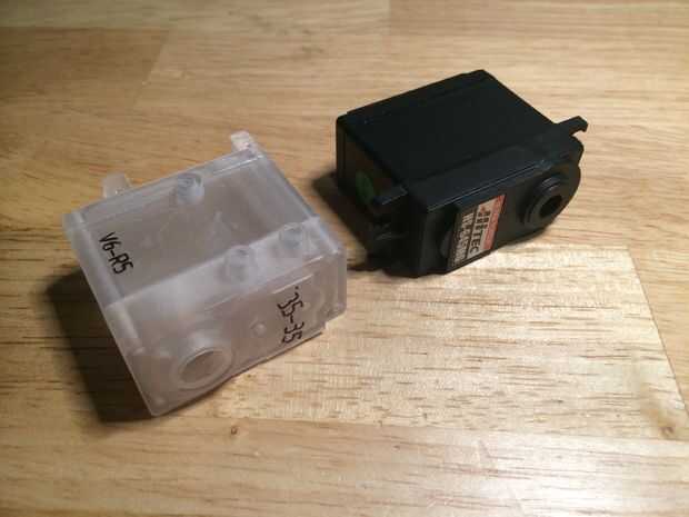 Aquí hay unas imágenes del caso de servo original junto a la caja de servo modificado. He observado en las imágenes los cambios que he hecho.