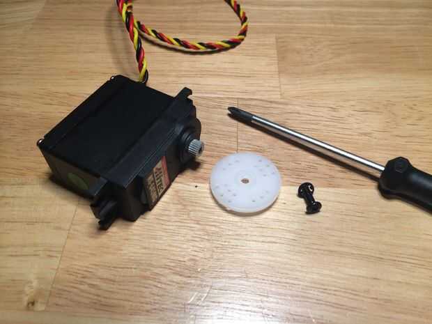 motores servos están diseñados para girar un máximo de +-130 grados. Pero pueden modificarse fácilmente para hacer giros de 360 grados. El hack está muy bien documentado para los varios modelos de motor servo. Aquí utilizo un servo Hitec HS-325HB com