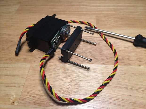 Comienzo por quitar el cuerno del servo, luego quite los cuatro tornillos que sujetan el servo.