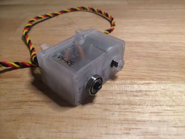 motores servos están diseñados para girar un máximo de +-130 grados. Pero pueden modificarse fácilmente para hacer giros de 360 grados. El hack está muy bien documentado para los varios modelos de motor servo. Aquí utilizo un servo Hitec HS-325HB com