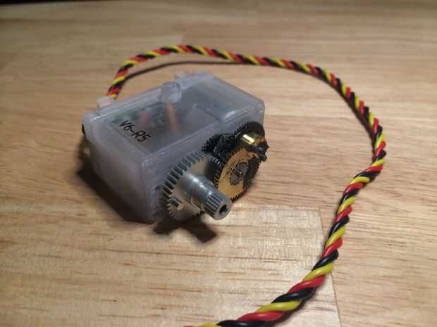 motores servos están diseñados para girar un máximo de +-130 grados. Pero pueden modificarse fácilmente para hacer giros de 360 grados. El hack está muy bien documentado para los varios modelos de motor servo. Aquí utilizo un servo Hitec HS-325HB com