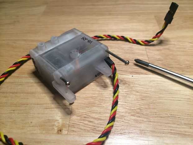 motores servos están diseñados para girar un máximo de +-130 grados. Pero pueden modificarse fácilmente para hacer giros de 360 grados. El hack está muy bien documentado para los varios modelos de motor servo. Aquí utilizo un servo Hitec HS-325HB com