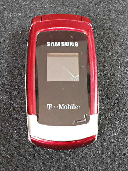 Imagen 1: Este es uno de los teléfonos flip que he utilizado en el pasado por cerca de 2 años. Además de la pequeña grieta y menores signos de desgaste, el teléfono es funcional aunque yo lo he caido muchas veces.