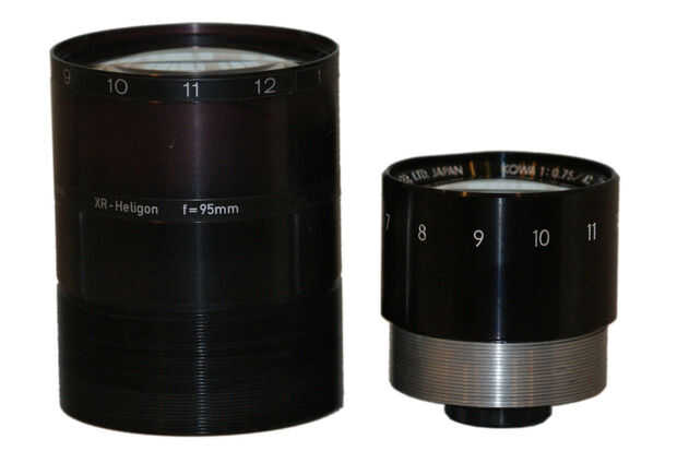 Debería ir sin decir que es necesario tener uno de estos objetivos antes de que se puede montar. Debería costar menos de 100 dólares--mucho menos. El más común parece ser un Kowa marcado 55mm 1:1, que es un f/1.0 de 55mm. Mi ultra rápidas todas las lentes tienen un hilo enorme montaje externo--como se ve en la foto. No sé cuántos diferentes tamaños estos lentes fueron hechas, pero mina tienen 60mm o 80mm de diámetro, y sospecho que no había muchos diversos tamaños a pesar de una variedad de longitudes focales y aperturas.