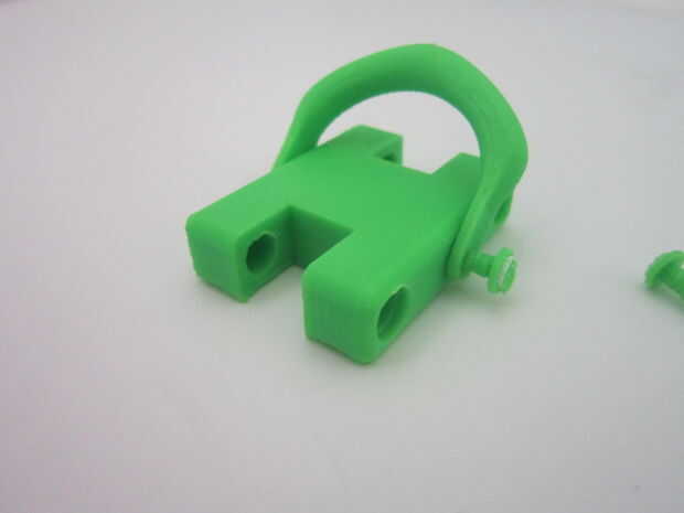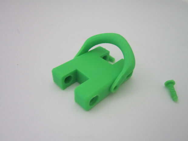 Después de imprimir y limpiar todas sus partes, puede empezar a armarlos. Primero tomar el bucle de llavero y montarlo en la pieza de H-cadena de llavero-bucle. Luego inserte los pernos de llavero lazo a través del lazo de llavero y en el eslabón de cadena. El bucle debe poder girar a un cierto grado.