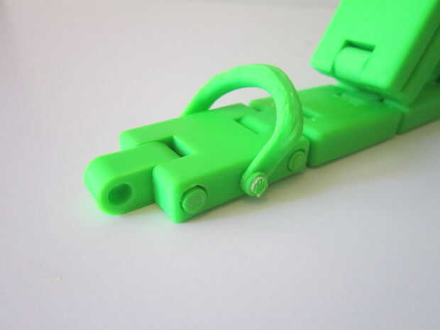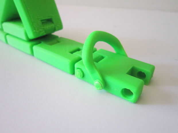 Después de haber montado el conjunto llavero lazo, acoplarlos a las piezas del mainbody. Alinee el enlace H-cadena de llavero-bucle en el extremo de la cadena. Luego inserte un perno Collar de mascota en el agujero y presione firmemente en su lugar. Continuar colocando la pieza del conector de la misma manera.