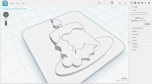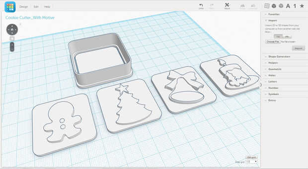 Seleccione el comando de impresión diseño y descarga de 3D desde el lado de la parte superior izquierda de la ventana. Seleccione .stl como formato de archivo si quiere imprimir el cortador de la galleta en su propia impresora 3D. Importar el fichero .stl a la máquina de cortar de su elección ( Cura) y enviarlo a la impresora 3D.