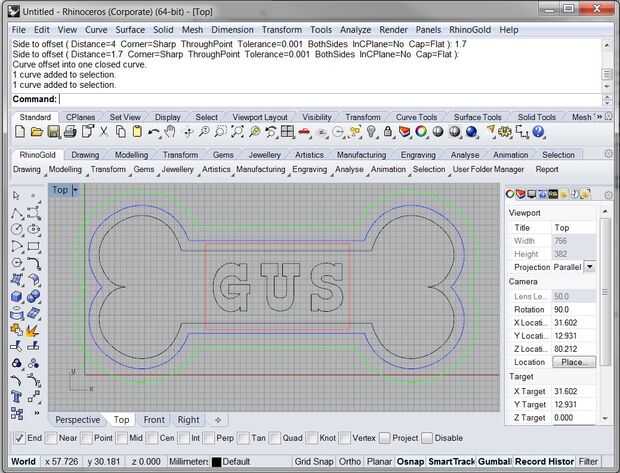 - Compensar nuestra forma personalizada 4mm (para una línea de borde de la base, verde en la foto)