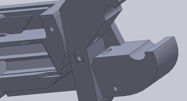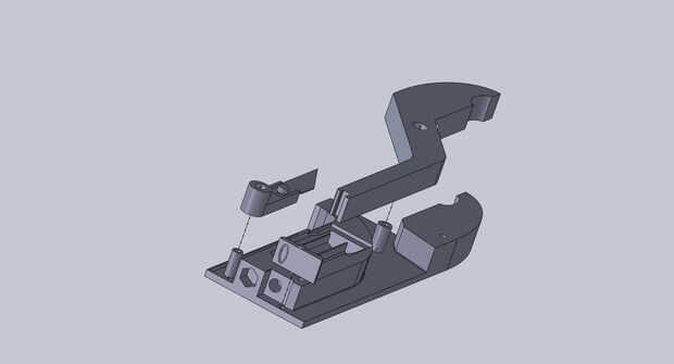 Coloque el gatillo en la parte posterior de la herramienta como se muestra. Es necesario que encaje en el agujero bastante libremente de forma que puede girar libremente. De nuevo, utilice papel de lija o un archivo si es necesario. La primavera restantes se ajusta entre el disparador y la placa base de la herramienta como se muestra.