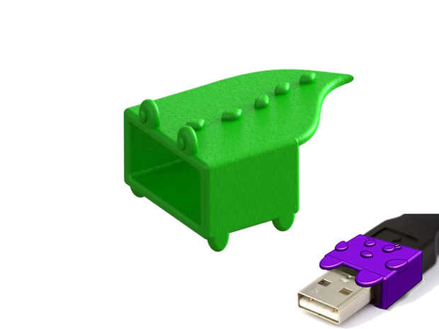 Por supuesto, podría utilizar alguna cinta de color para etiquetarlos. Pero eso sería demasiado simple y aburrido. Quiero que mi USB cables para hacerme sonreír. Por lo tanto, he diseñado estas decoraciones que pueden solicitarse en 3D printservices imprimir como Shapeways.