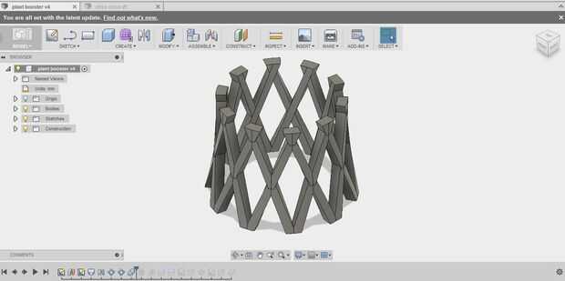 El mismo proceso fue utilizado para ambos soportes, variando el ángulo girado de los bocetos y el número de vigas para crear diferentes formas.