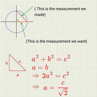 - Para obtener el radio utilizado en modelado, divida esta medida por √(2)