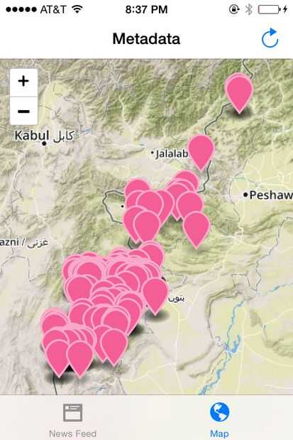 -Mapa de ataques de drones en Pakistán. Vimos varios mapas en línea que registran nuestra guerra actual abejón en Pakistán. La más precisa y actualizada es el proyecto "Metadatos" por Josh Begley esta app es para descargar y usar gratis.
