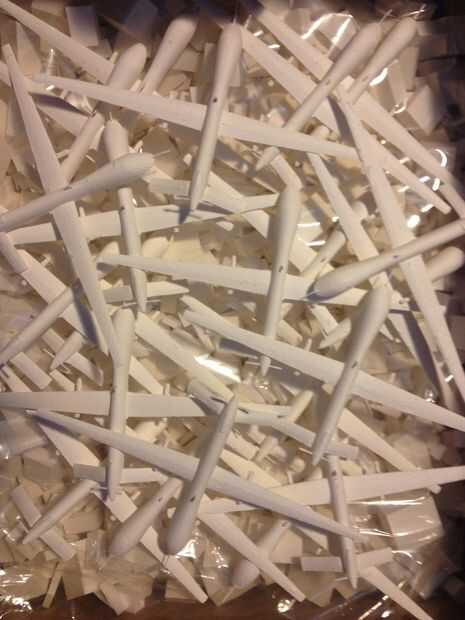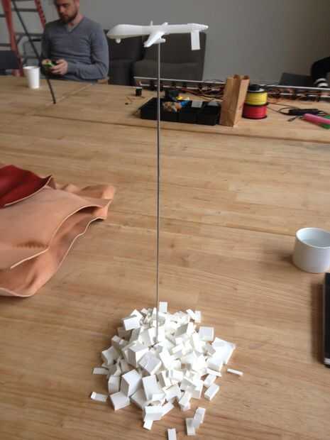 A través de un poco de ensayo y error descubrimos que habría sido muy difícil hacer realidad 3D drones impresos a la escala desea (aproximadamente 7-8" envergadura) que efectivamente podría ser ahuecado para LED de iluminación de la casa. Nos trasladamos en su lugar, hacia un plan a la luz cada drone desde abajo - las sombras crean en el techo de una galería espacio ser algo increíbles en nuestros experimentos con nuestro primer 3D impresos aviones no tripulados y el sistema de iluminación LED. Una vez que hemos decidido en nuestro plan de juego, estos son los materiales que utilizamos: