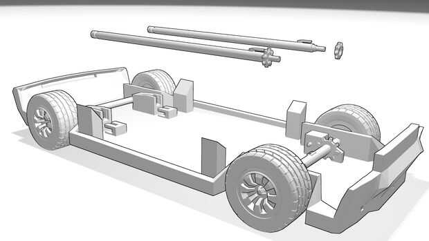 Luego inserte los ejes en el orificio que se encuentra cerca del frente del eje trasero y encajen en las ranuras cerca del frente.