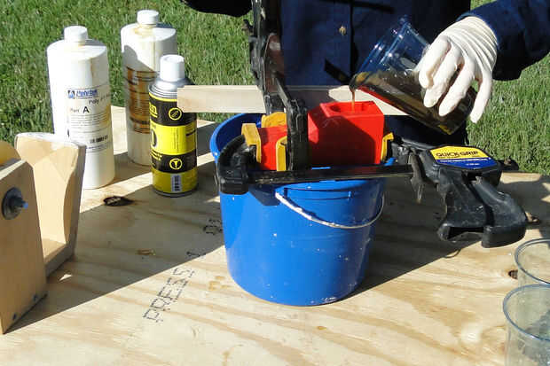 Coloque su molde sobre el cubo para recoger el goteo. Apuntale a nivelar si es necesario. Deje que la curación de goma al menos una hora.