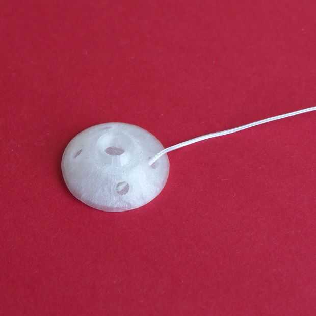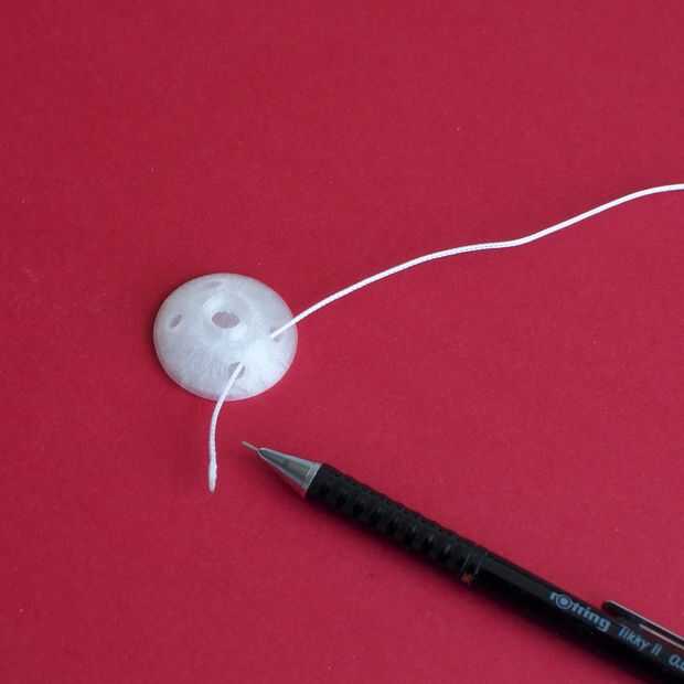- Pega una cuerda a través de dos agujeros en el pulsador que están juntos. Utilice un lápiz de shart a retorcerse la cuerda a través del segundo agujero.