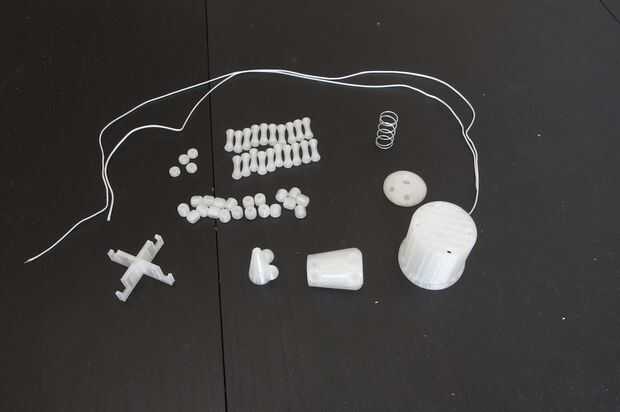 - Poner el pulsador plano sobre la mesa y poner el resorte en el cilindro en el centro.