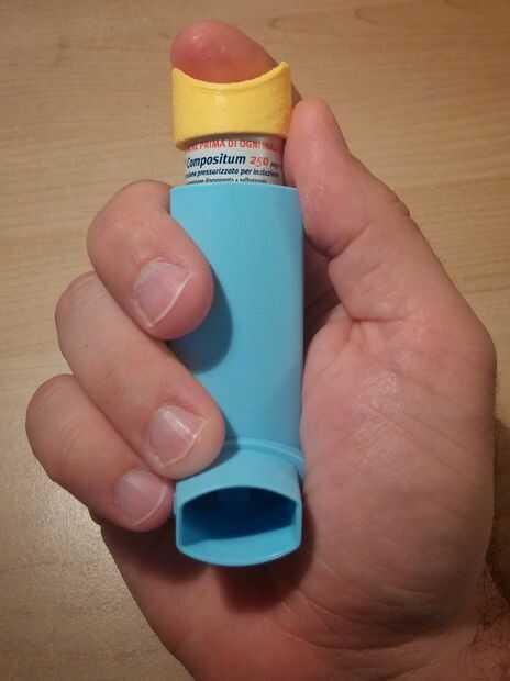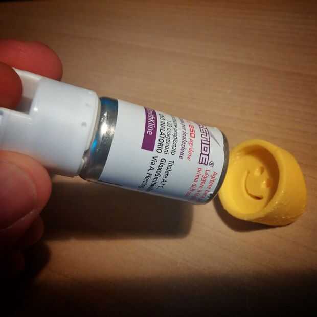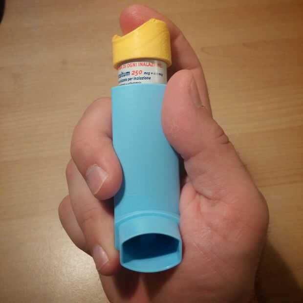 Gracias a la forma del diseño, el objeto puede instalarse fácilmente sobre el envase metálico de su inhalador de asma.
