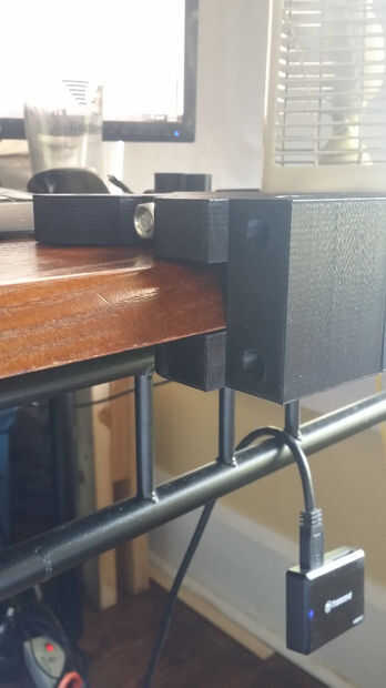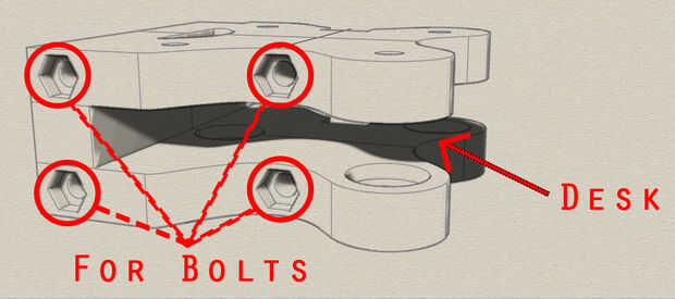 El objetivo de la pinza es sostener nuestro artilugio entero a la mesa. Desea que su centro de gravedad sobre el escritorio, por lo que no va a salir nunca. También vas a querer tu pinza para ajustarse muy bien a la mesa *. En mi diseño adjunto, yo intencionalmente demasiado había diseñado todo en cuanto a grosor por lo que no sería preocupaciones con la fuerza de todo el dispositivo.