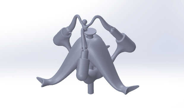 He creado esta pequeña escultura mecánica utilizando piezas impresas casi totalmente 3D. Los ejes son de acero, y hay algunos hardware del metal, así: eje collares para sostener los ejes/engranajes en su lugar, unos cojinetes con bridas de bronce y a