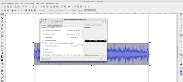 Para poder convertir a su forma de onda en un modelo 3D, primero tiene que convertir a un archivo vectorial que puede ser leído por varios programas de CAD. Para ello, utilizo el Inkscape.