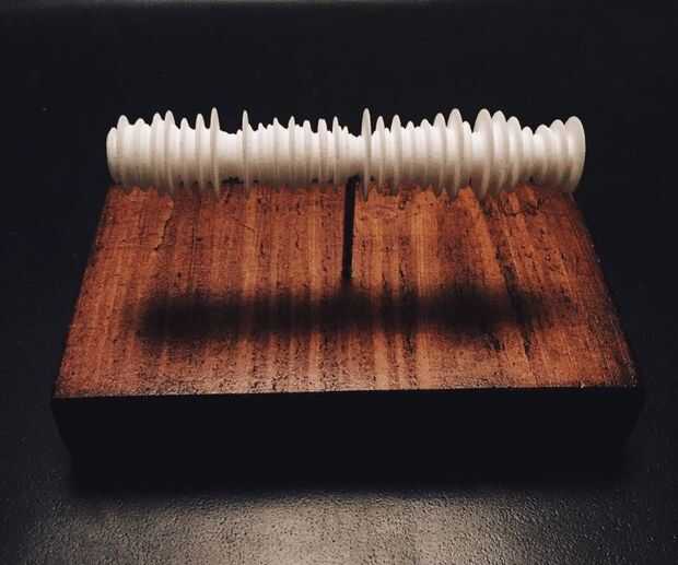 Una vez terminada su impresión, encontrar un pedazo de madera, un barniz y un clavo. Como este es mi primer intento, se olvidó de hacer un agujero en el modelo antes de la impresión y tuvieron que perforar manualmente un agujero. Esto es algo que trato de evitar en el futuro.