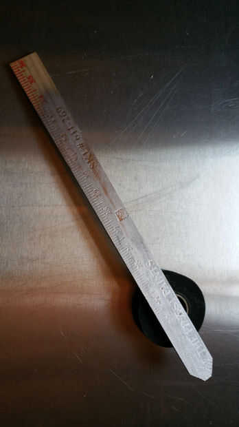 Todo es broma aparte, el criterio fue rebanado por la mitad con una sierra de cortar, cortar las hojas a 18" esto parece ser adecuado para los niños más pequeños. También la longitud más corta reduce la velocidad de punta (duele menos). A continuación en forma de las puntas en una hoja más como diseño y blunted los consejos de seguridad.