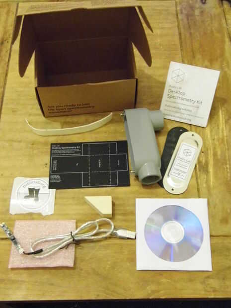 El kit de laboratorio público existente proporciona todas las piezas para construir un espectrómetro funcional el kit incluye:
