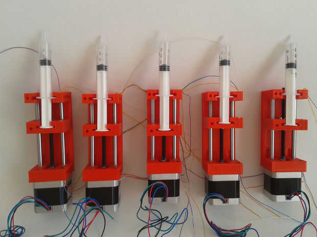 Este instructivo sirve para documentar el proceso de construcción de un 3D impreso jeringa de la bomba. El bastidor está compuesto por 5 bombas de jeringa, con esta configuración puede tener 2 sistemas de flujo continuo y una bomba restante (si tienes el tubo adecuado y válvulas).