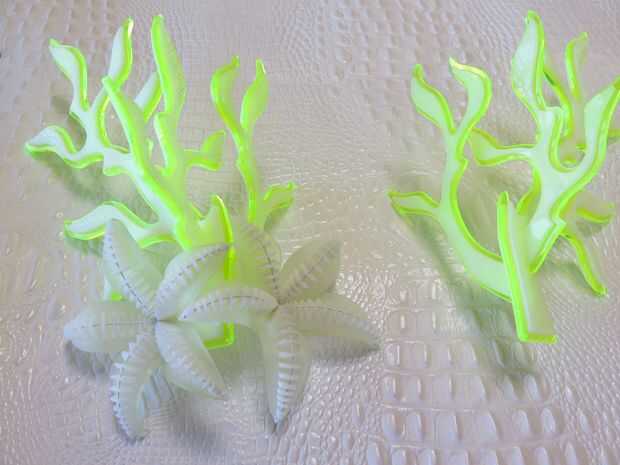 Tengo mi acrílico para las cornamentas en el grifo de plástico en San Francisco, pero puedes pedirlo en línea desde lugares como Inventables, Acrylite. Usé un 12 x 24" pedazo de UV verde y una 12 x 24" pedazo de blanco Semiopaco, ambos 18" espesor