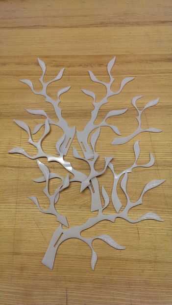 Yo también había grabado una textura de vena de hoja en las partes de la hoja de las capas blancas. Para ello I simplemente encontraron la forma de la hoja, vivo había trazado en Illustrator y tamaño y recortada para caber cada hoja. Cortar muescas ambas capas de la rama principal, para crear las juntas de ranura con las capas verdes de las dos ramas forking. También puse 4 agujeros en la parte inferior de cada rama principal para acoplar a casco.