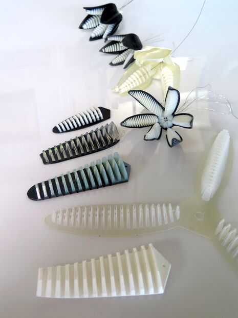Una de las primeras cosas que probé fue incorporar las espinas duras en la base suave, así que el material duro fue a través de todo el camino a la parte posterior del pétalo. Esto parecía fresco, especialmente cuando usaba Vero claro y negro además de Tango, pero lo realmente empeorar el problema. Mientras que las espinas realmente no podían despegarse de la base, que terminaron causando sólo pétalo entero de romper por la mitad después de mucho movimiento.