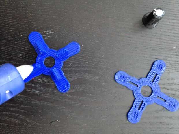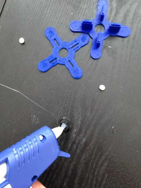 Aquí utilice el otro soporte de imán cilíndrico que había impreso en el paso anterior y pegamento caliente el imán. Y también utilice pegamento caliente para fijar el balanceo arriba círculo hacia abajo