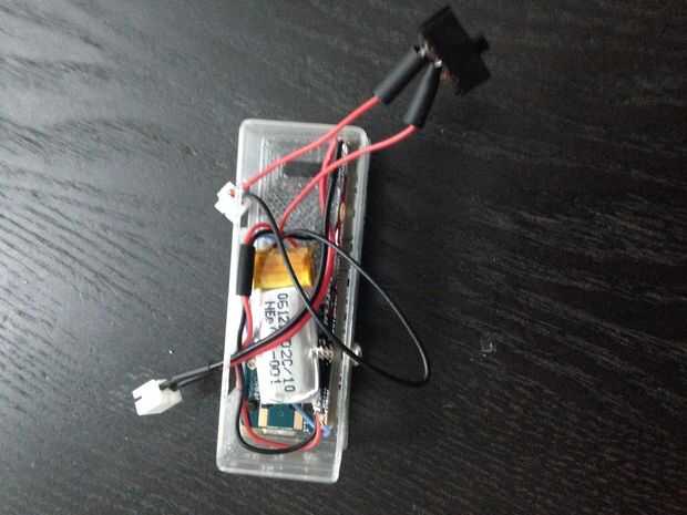 Pasar los conectores macho y hembra JST a través de los dos de apertura, que están enfrente de las tiras de NeoPixel...