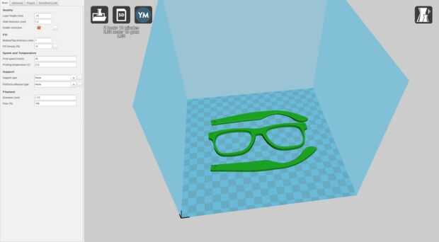 Primero tenemos que tener las partes de las gafas de sol impresas, para eso, tenemos que imprimirlas.
