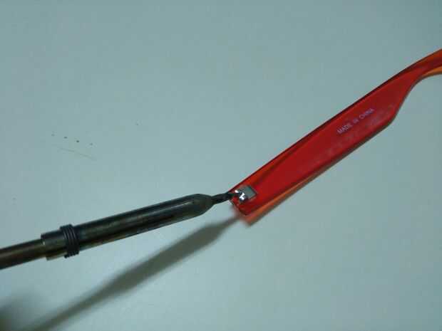 3 - usando el soldador que vamos a extraer las bisagras de los templos y el marco