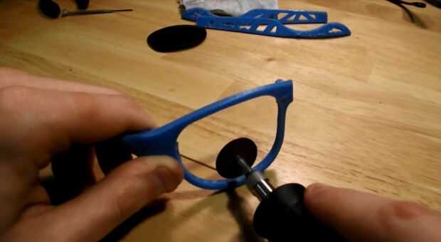 No diseño cualquier ranuras para las lentes encajar en el puesto que yo no estaba seguro exactamente de cómo cerca iban mis diseños para adaptarse a las lentes. Una vez que imprimí los marcos vi realmente sólo necesita ranuras en la parte superior e inferior de los marcos, usé una dremel con un accesorio de la rueda de corte para hacer ranuras para las lentes encajar en.